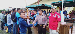 Selanjutnya acara penyerahan Piala dan Trophy kepada para juara Turnamen Sepak Bola "Kapolres Dairi Cup Tahun 2018" secara simbolis diserahkan Oleh Waka Polres Dairi Kompol Togu Matanari.