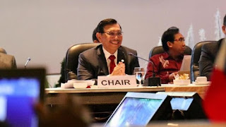targetoperasi.com - Menteri Koordinator Bidang Kemaritiman, Luhut Binsar Pandjaitan mengangkat berbagai isu di sektor lautan dalam rangkaian acara Annual Meeting WEF 2019 di Davos, Swiss. Hal ini disampaikan Menteri Luhut saat mengisi sesinya di acara Workshop on Initiating a Global Insititute and Tri Hita Karana Roadmap for Blended Finance di Indonesia Pavilion Promenade, Kamis (24/1/2019).