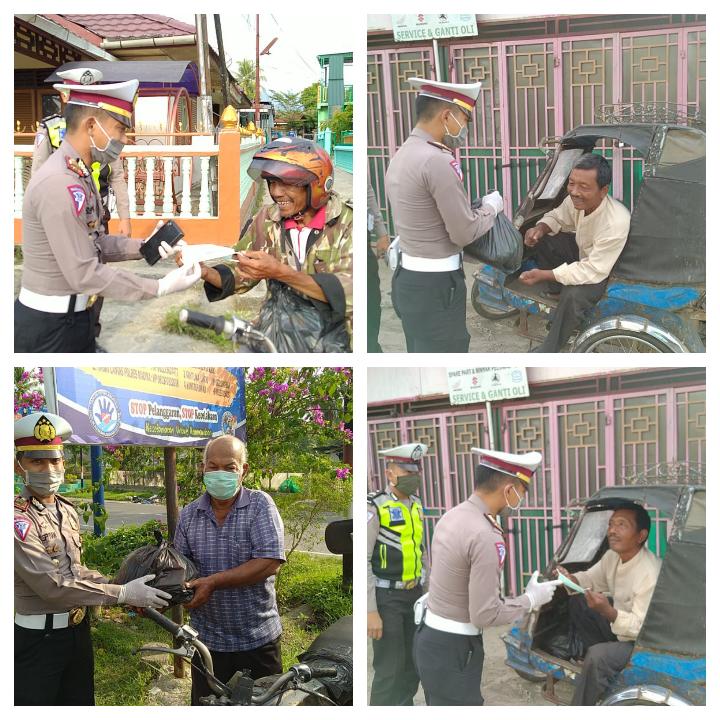"Dengan menggunakan ranmor dinas kami memutari kota panyabungan, begitu melihat pengemudi betor yang tertib dalam berlalu lintas kami turun dan memberikan sembako juga masker kepada yang bersangkutan", jelas Kasat Lantas Polres Madina AKP Septian Dwi Rianto, S.H, S.I.K.